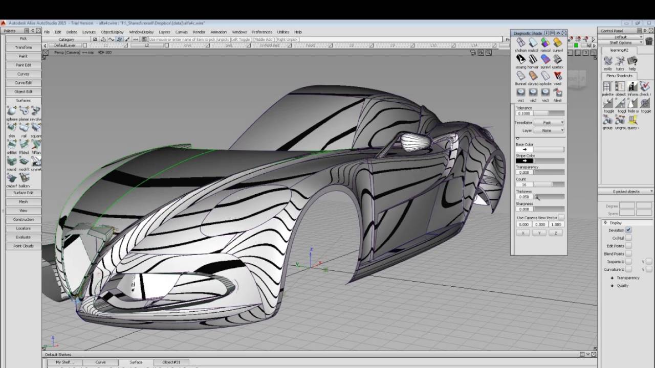 Through a continuous workflow from concept to production quality surfaces, the Alias software provides industry-leading surfacing capabilities ― supported by best-in-class sketching, modeling and visualization tools ― helping you to create innovative and compelling designs faster than your competition, while maintaining design intent throughout the process.