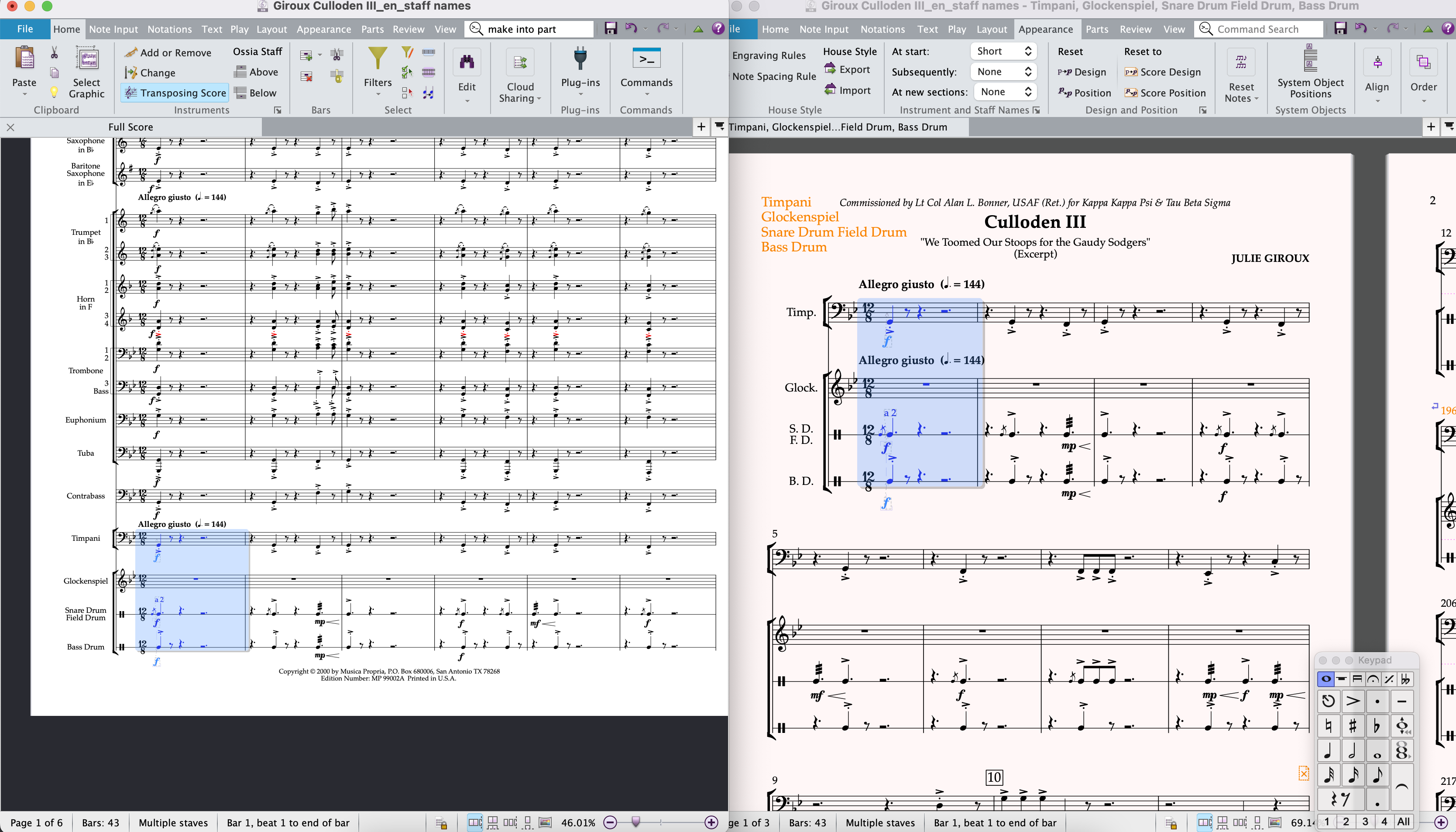 - The output of the score and parts as PDF files