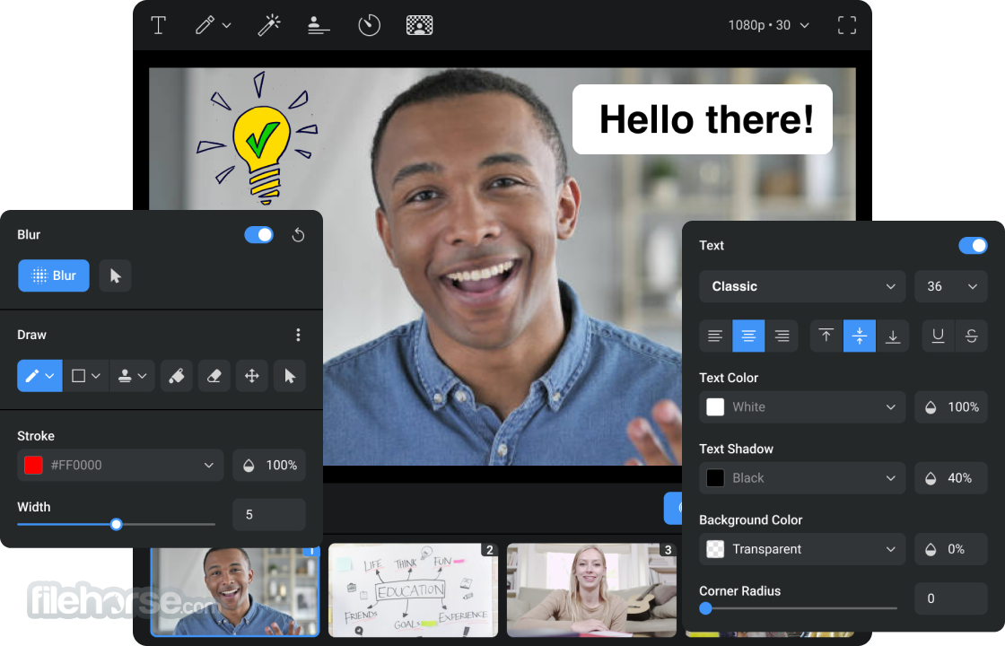 You can add thousands of amazing webcam effects and custom graphics inside any webcam application. Change your face, eyes, and hair, add backgrounds, and more.