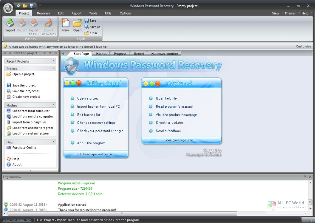 - Advanced password lookup algorithms (Artificial Intelligence attack, password recovery using Passcape tables, instant password recovery for the most accounts with fingerprint logon, etc.)