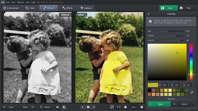 - Colorize B&W photos automatically or manually