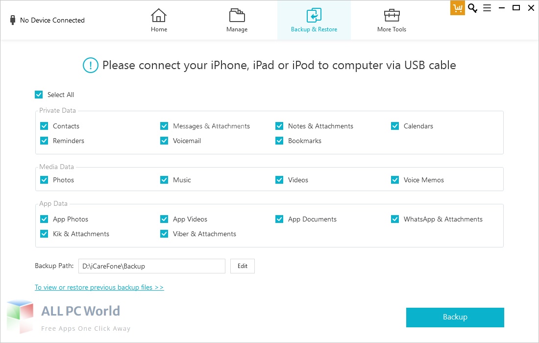 With Tenorshare iCareFone 2023, you can transfer files between iOS devices and PC/Mac flexibly and efficiently. You can also use this program to back up your device and later restore your data. Using this program, you can get rid of iTunes or iCloud and selectively back up the device.